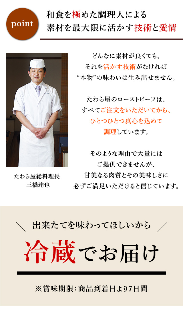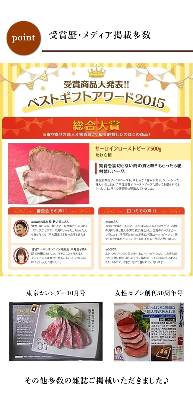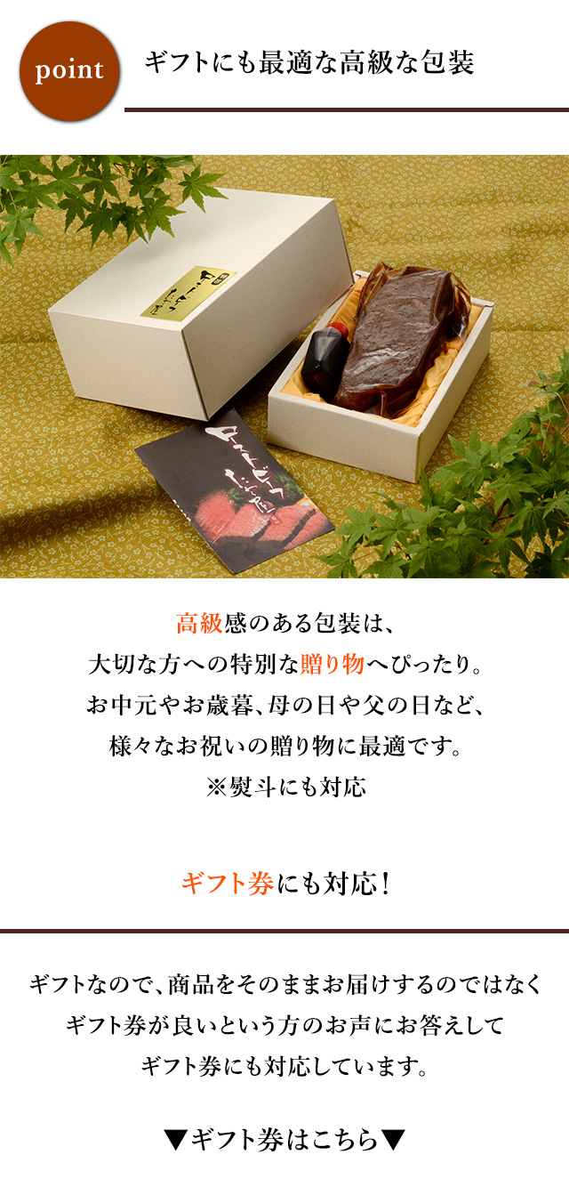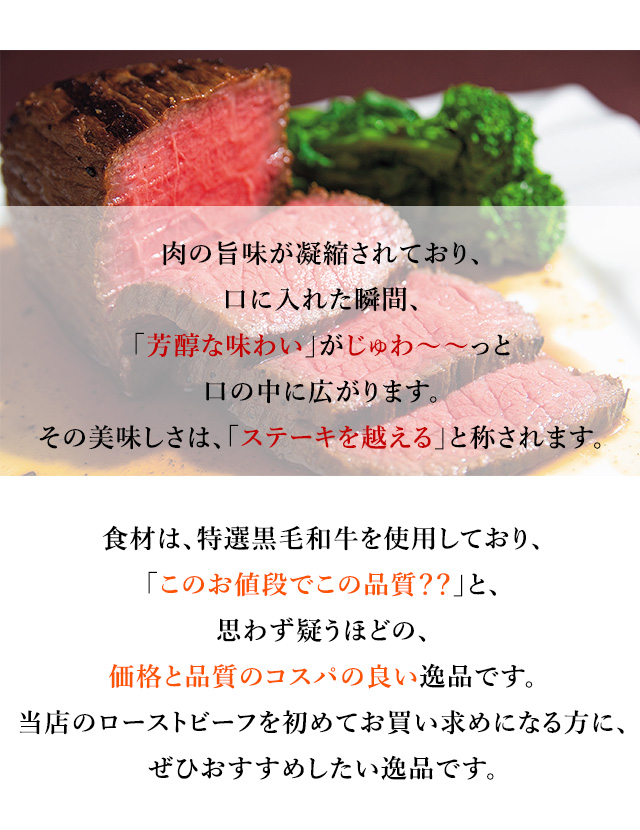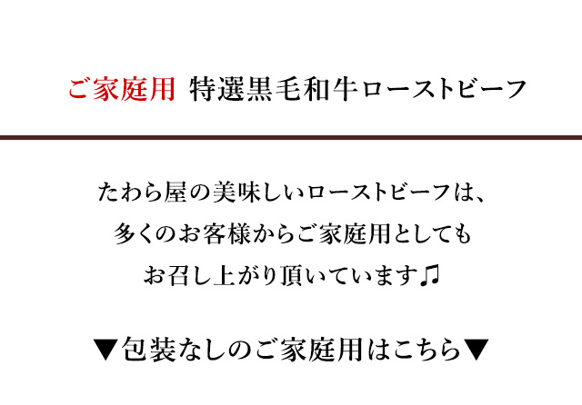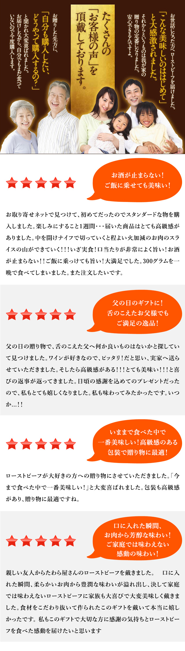 お中元にローストビーフを届けました。「こんな美味しいのははじめて」 と大感激されました。それからというものは我が家の贈り物の定番になりました。安心できるんですよ。