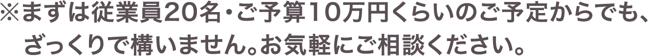 「だいたいこのくらいの人数・このくらいのご予算」という段階からでも、いくつかのパターンでお見積もりをご提出いたします。