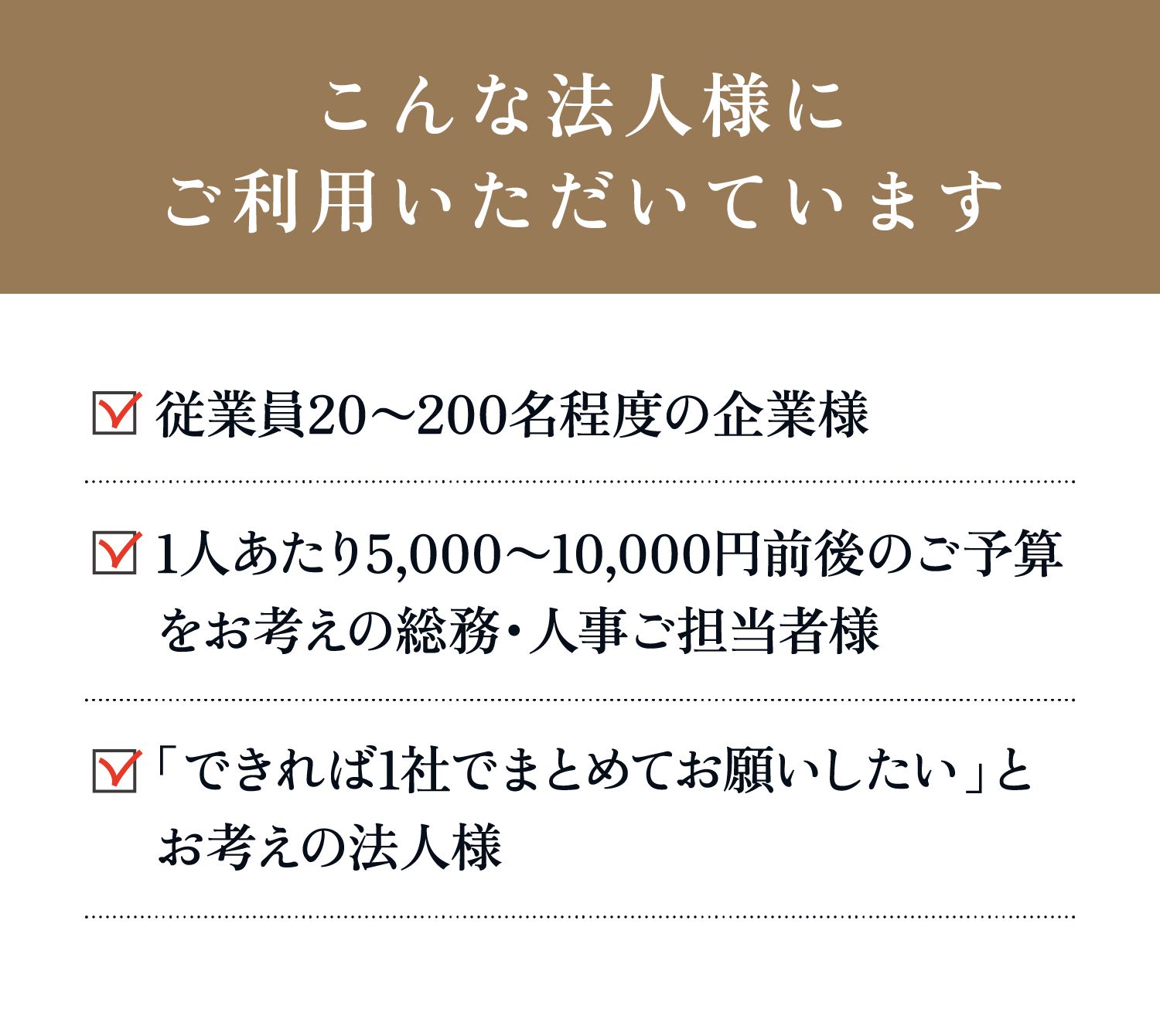 はい、可能です。従業員数・役員様の人数・ご予算をお聞きし、
