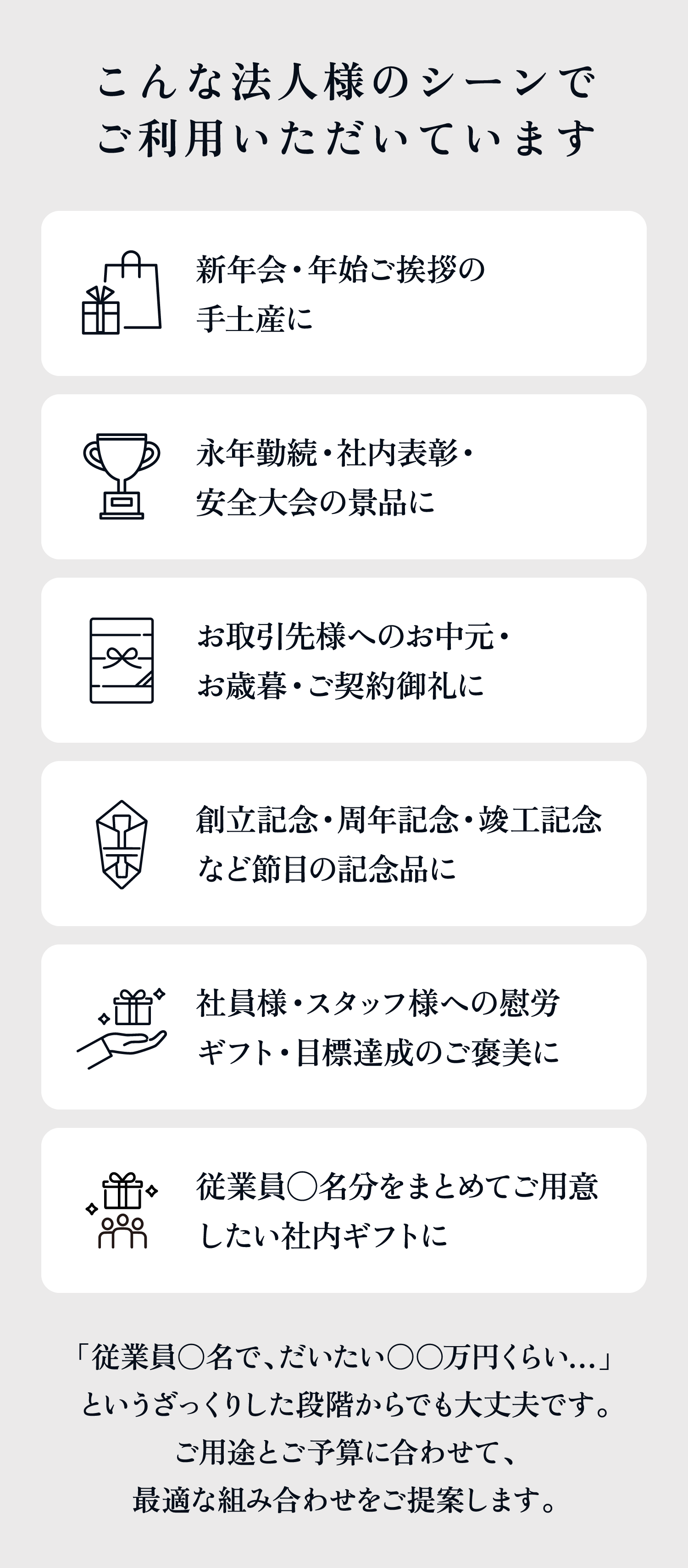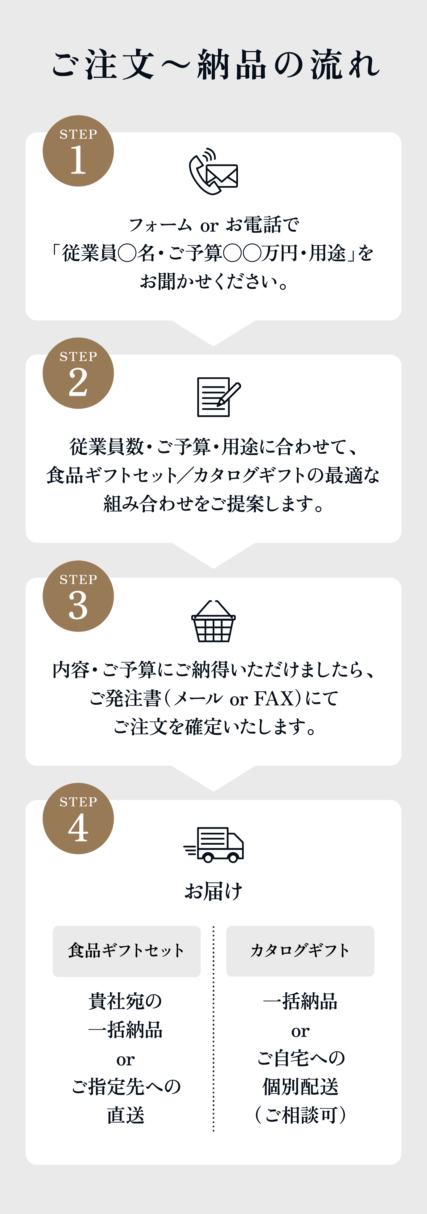 食品ギフトセットは事業所様宛て一括配送が基本ですが、