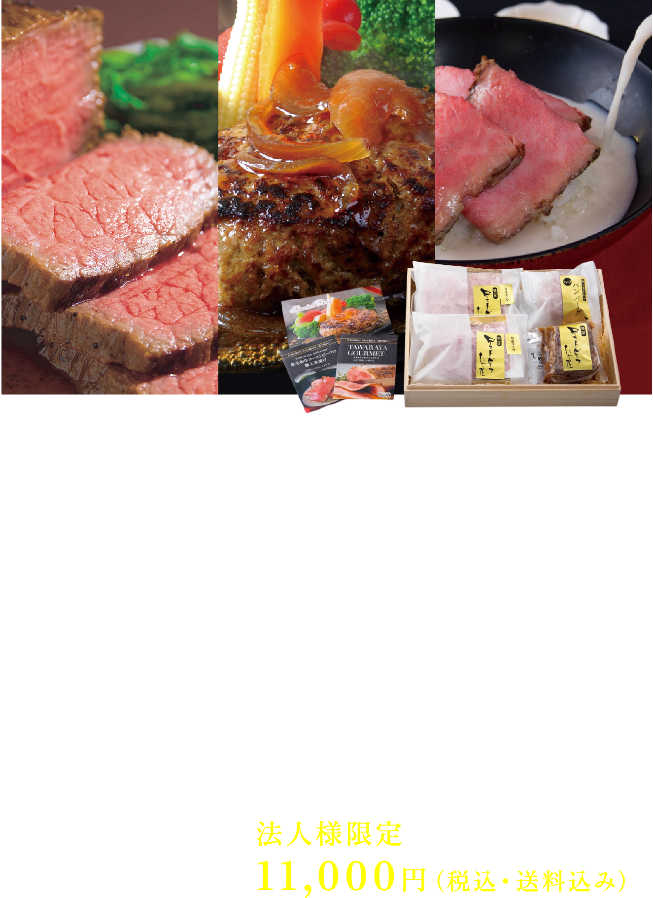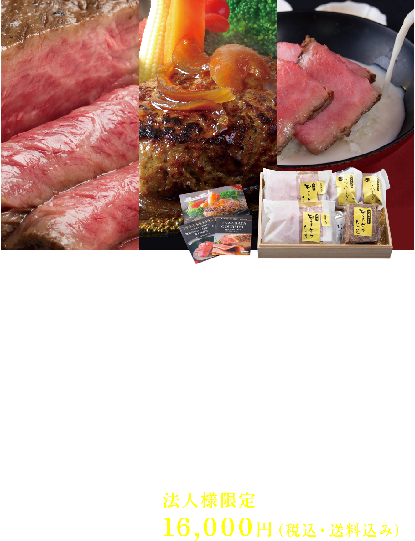 4,980円(税込・送料込み)/11,000円(税込・送料込み)/16,000円(税込・送料込み)の3つの黒毛和牛ギフトコースのみからお選びいただけます。