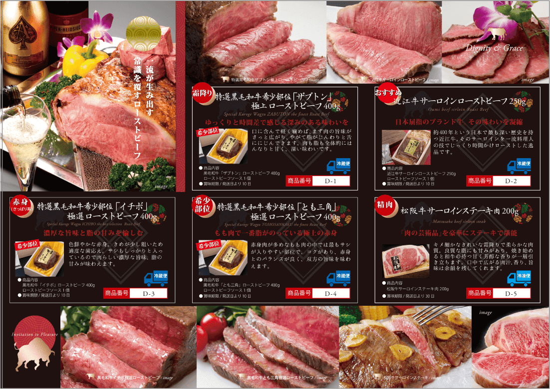 良い日にお届けします。 当店で取り扱うローストビーフは、どれも最高級品質A3等級以上の雌牛のみを使用しております。