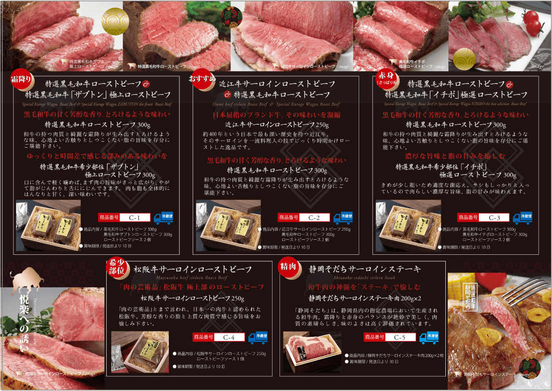 ※ローストビーフは冷蔵で、お肉は冷凍でお届けします。