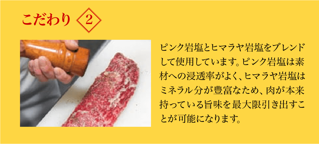 安心安全は言うまでもなく、徹底した鮮度・衛生管理のもと調理しています。 そんな料理だからこそ、提供する肉にも厳しい目で接し、肉の持つ特徴を活かしたメニューが提案出来るのです。