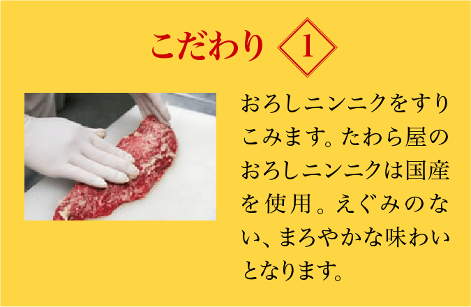 たわら屋の料理人は「食に情緒と感動を」の信念のもとに卓越した技量を持つ「肉を扱うプロ」です。